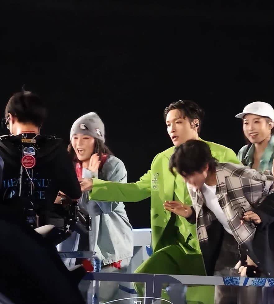 在王力宏演唱会上,她还拉着王力宏一起跳。