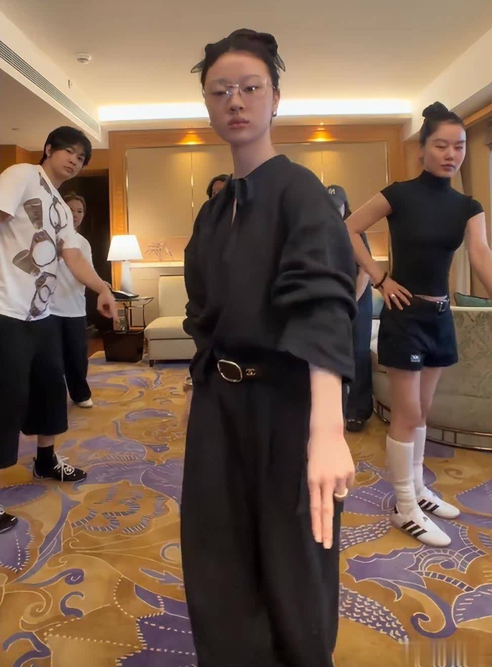单依纯带着自己的团队素颜开跳。